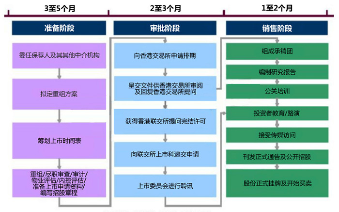一般情況下,內(nèi)地企業(yè)赴港上市的整體流程和安排可以分為以下三個(gè)主要階段:準(zhǔn)備階段、審批階段和銷售階段:
